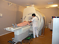 写真はおくさんが頭部MRI・MRAの検査をうけようとしているところです。