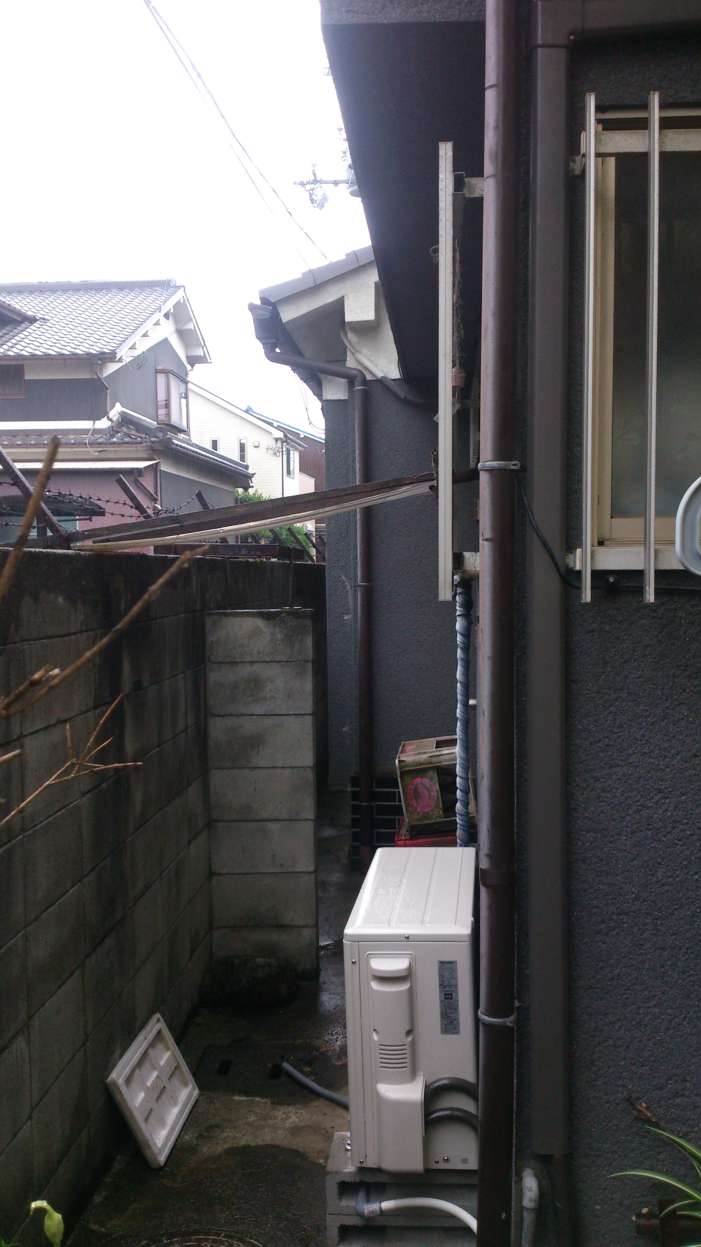 増築した納戸部分に パイプが室外まで
