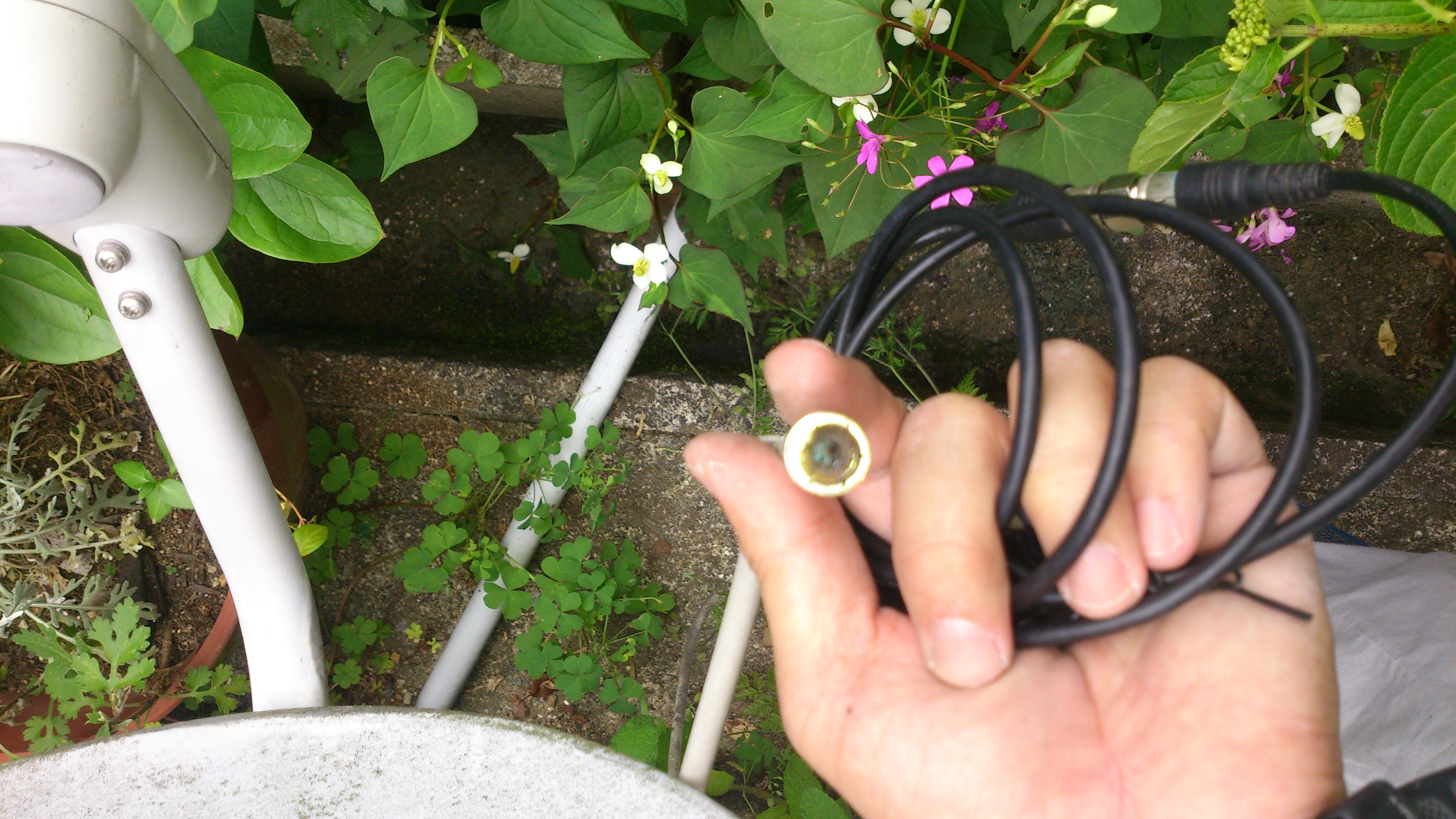 BSアンテナのコンバーター部に穴が開き
