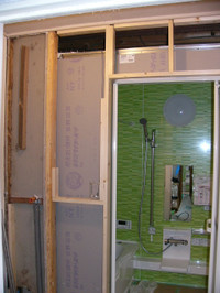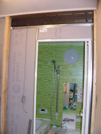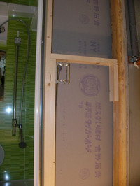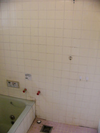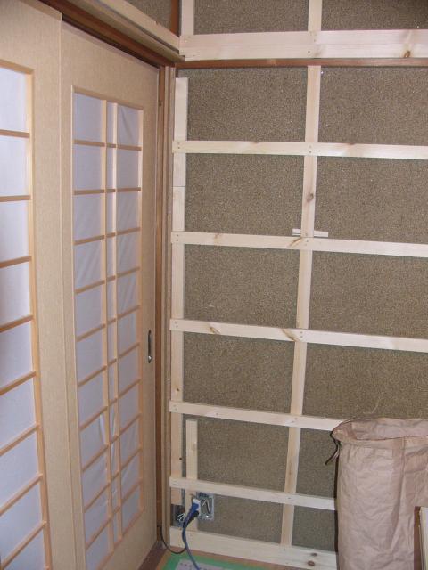 壁のうえに下地をはるための作業をします。