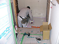養生をした上に大工さんの作業台をおいて作業開始します。