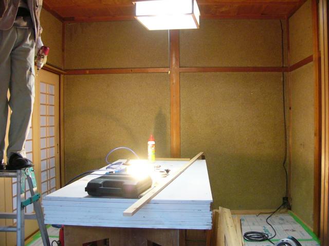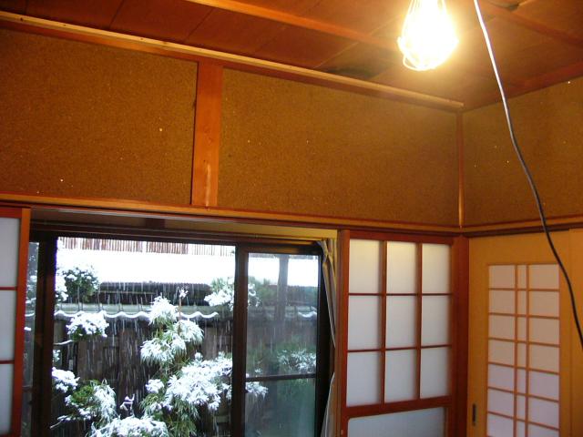2013年1月15日 リフォーム1月14日 大雪の日でしたがM様邸の天井と壁をクロスにリフォームします。