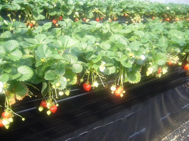 外は寒いですがイチゴ農園の中は