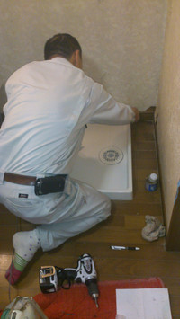 洗濯パンを取り付けしています。