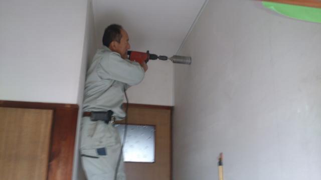 穴開け作業中の店長です。