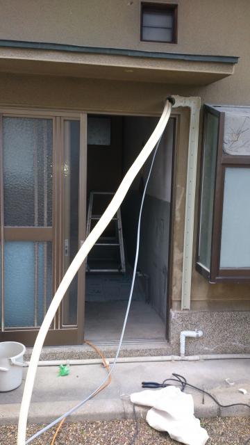 内機を取り付けた壁から室外機までの途中の配管です。