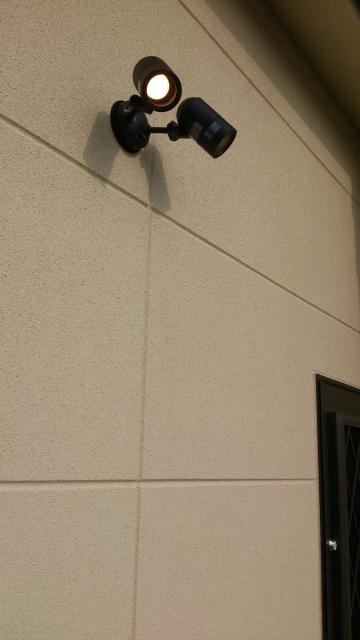 外玄関の照明器具にはセンサーを隣につけました。