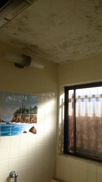 マスクをして在来工法の浴室換気扇取り付け工事は大変な作業です。