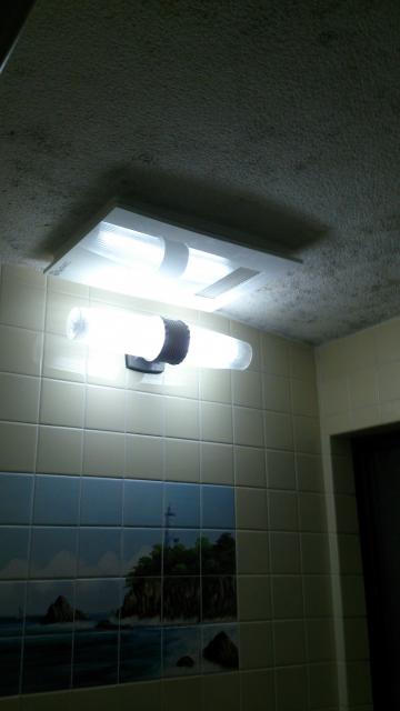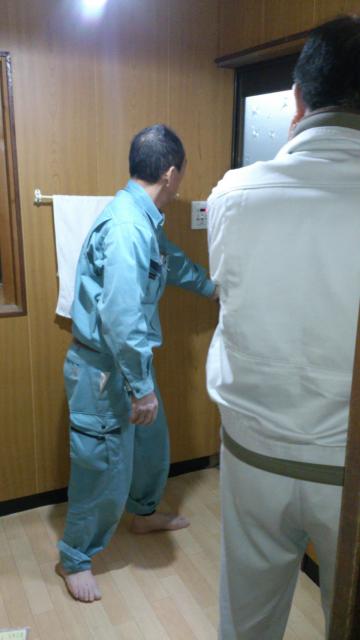 午後から二人一緒に既存のお風呂に浴室暖房器を取り付ける仕事にいきました。