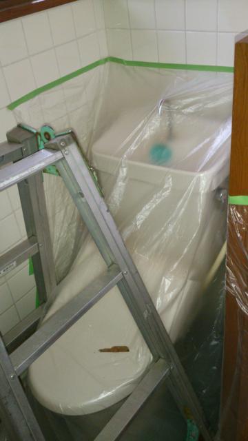 1階のトイレの養生をします。