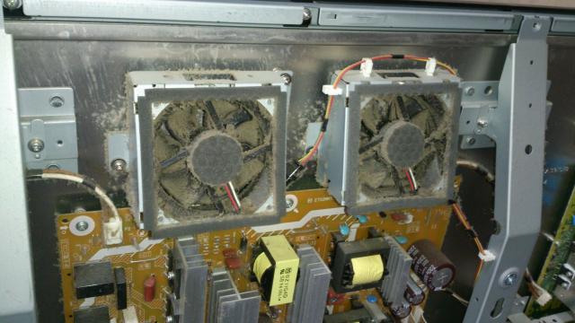 中を見ると ファンにほこりがびっしり