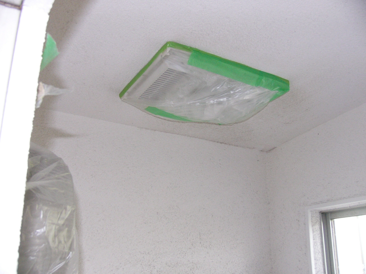 浴室換気暖房器も養生します。