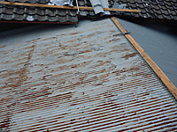左側が既存の屋根 右側が張り替え途中のやねです。