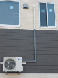 写真は 事務所新築のお客様の 室外機取り付けの写真です。