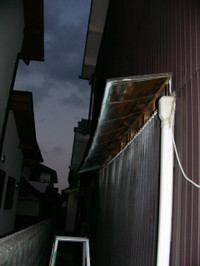 トユに不具合があり雨水がトユからもれて下のひさしにあたりということでした。