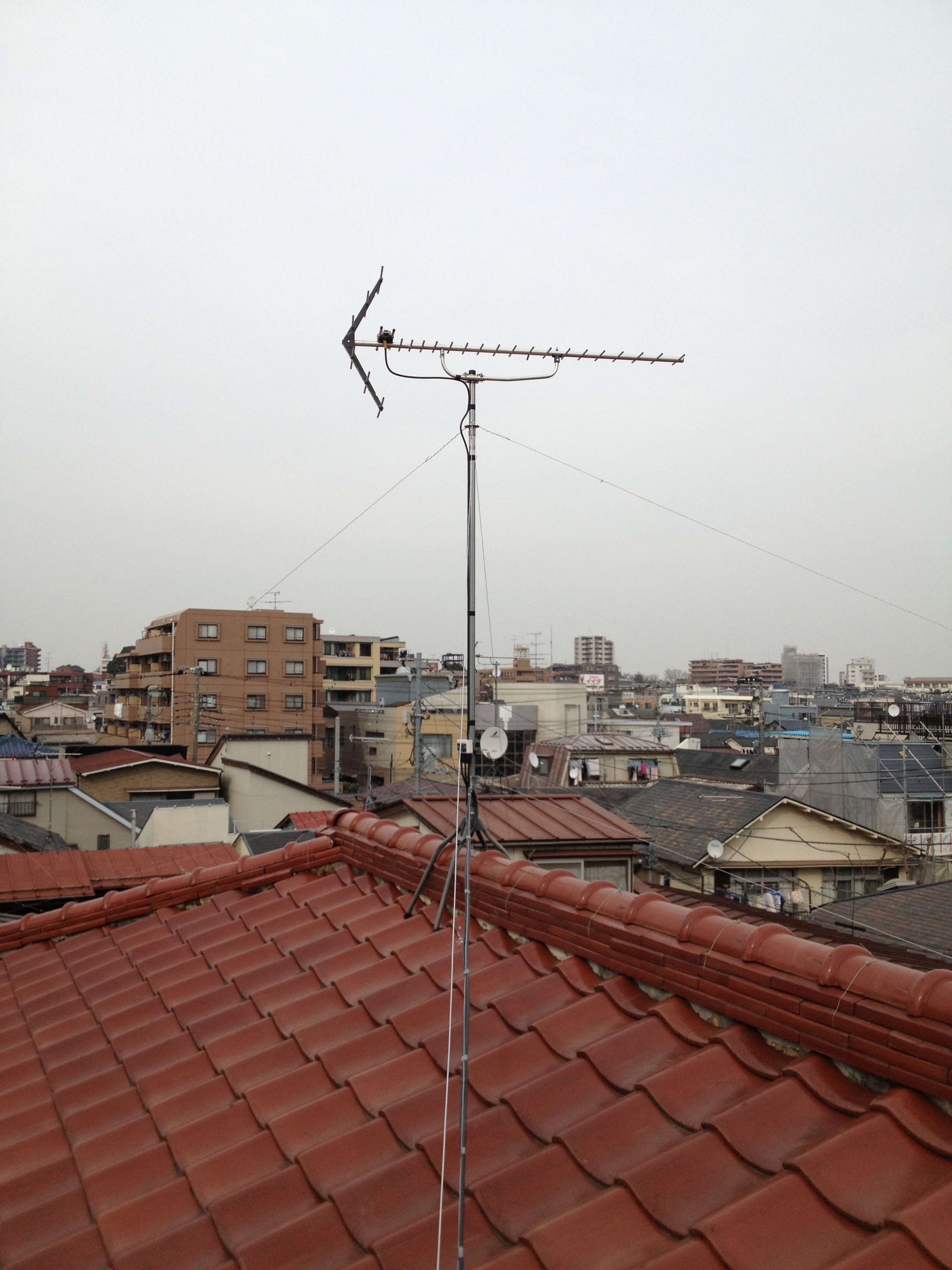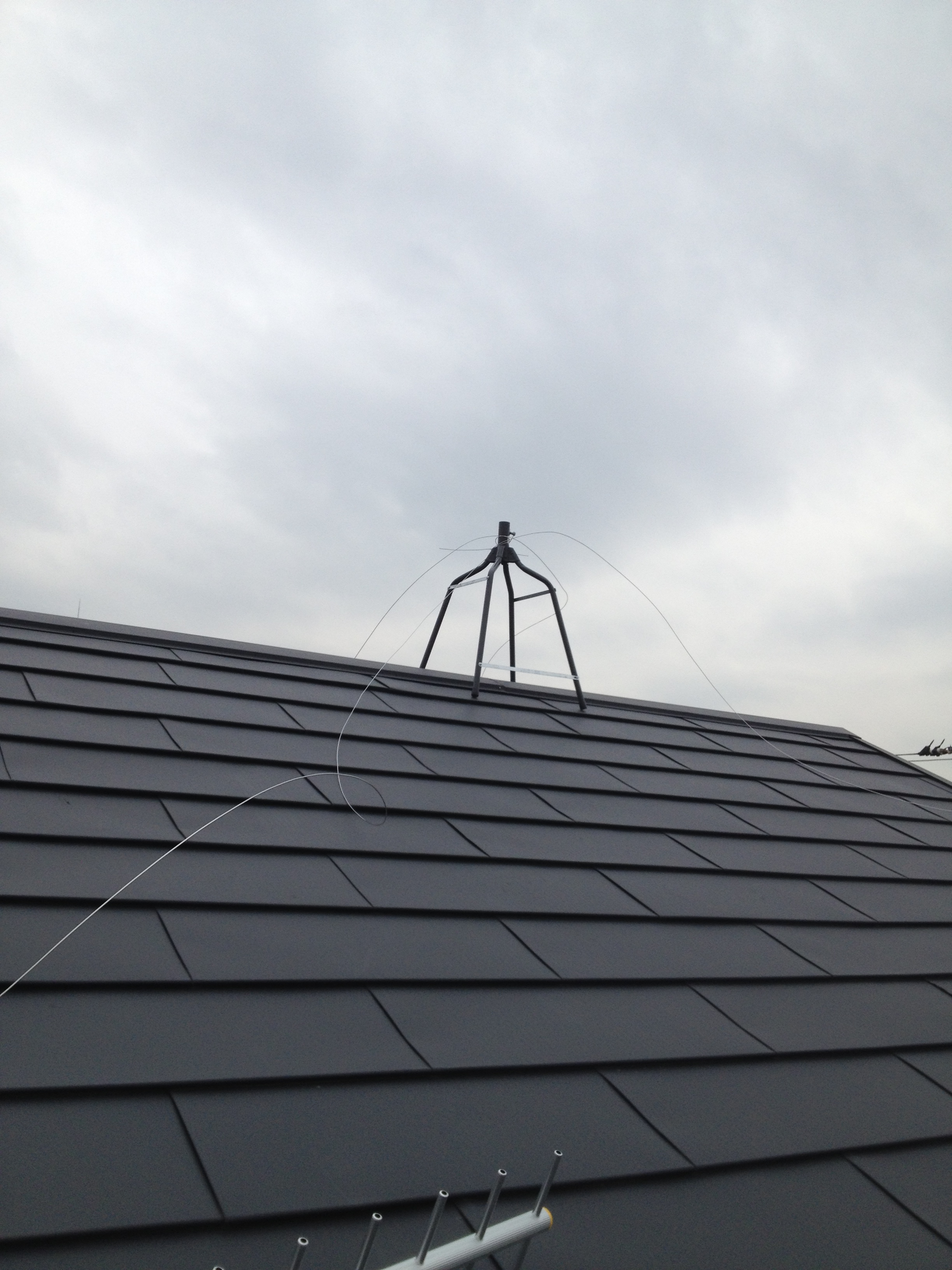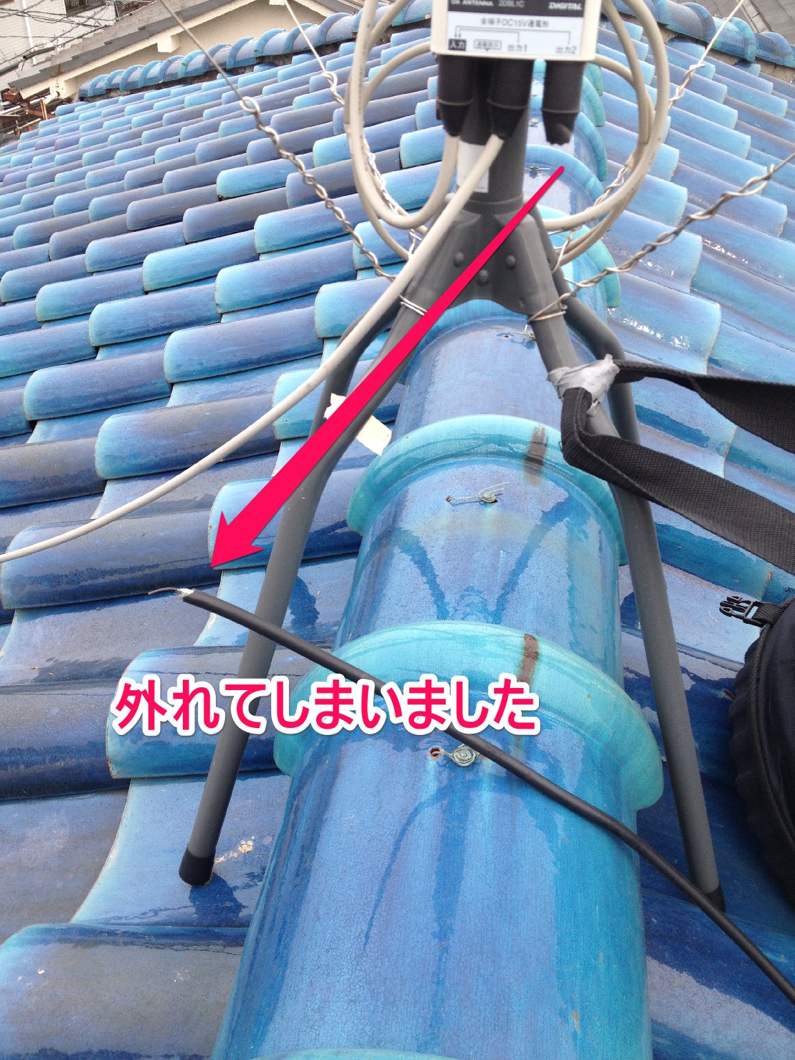 問題は、アンテナケーブルを屋根に対して垂直に下ろさず、斜めに