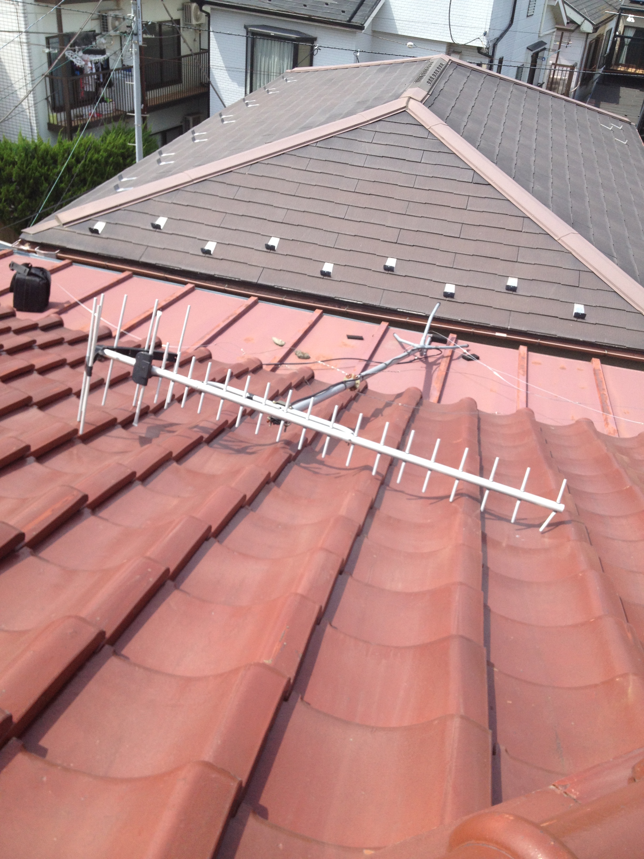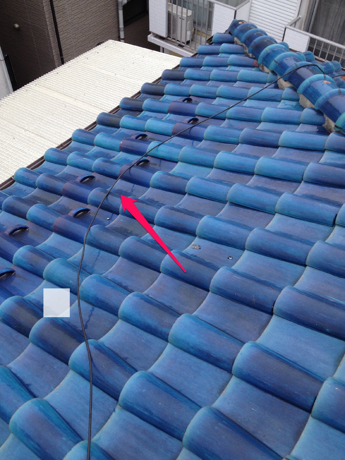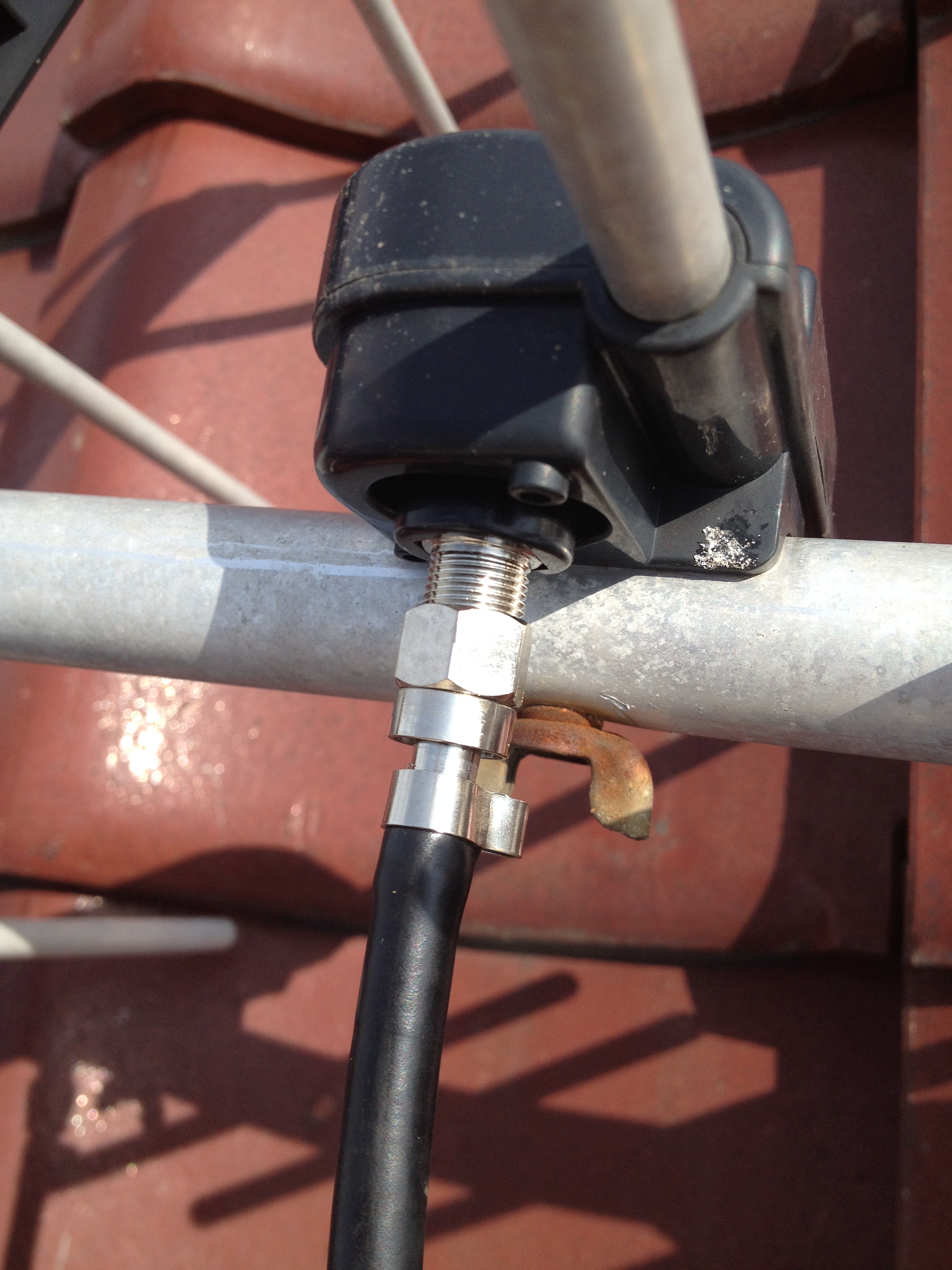 問題は、アンテナケーブルを屋根に対して垂直に下ろさず、斜めに