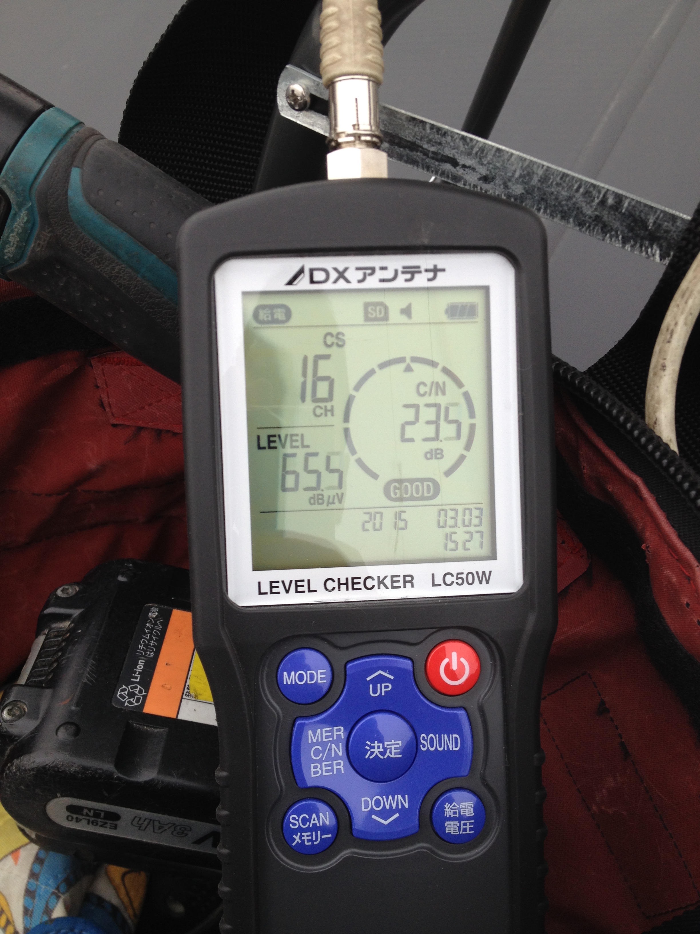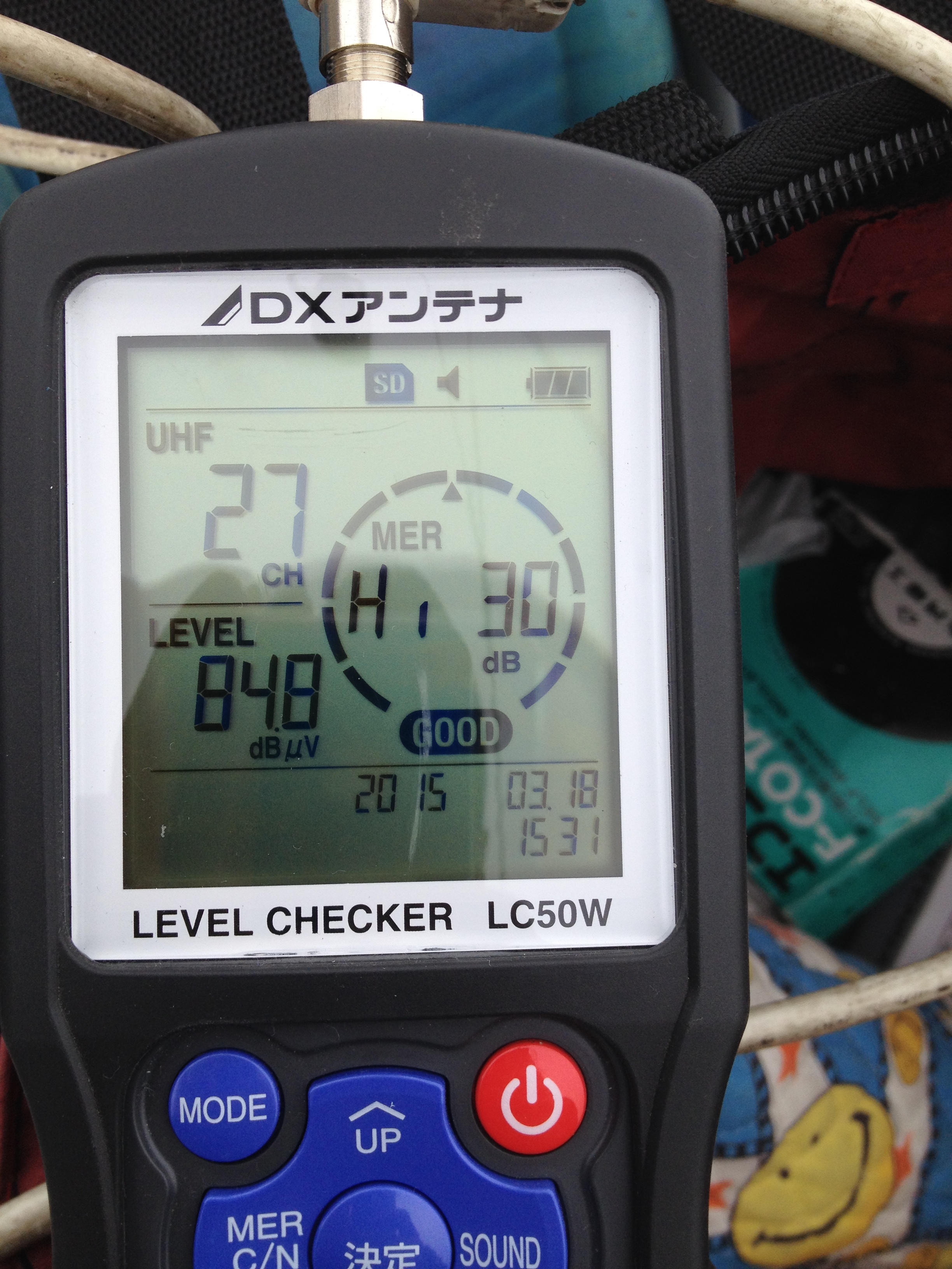 改めてレベルメーターで測定します。レベルは非常に低く、電波状態も