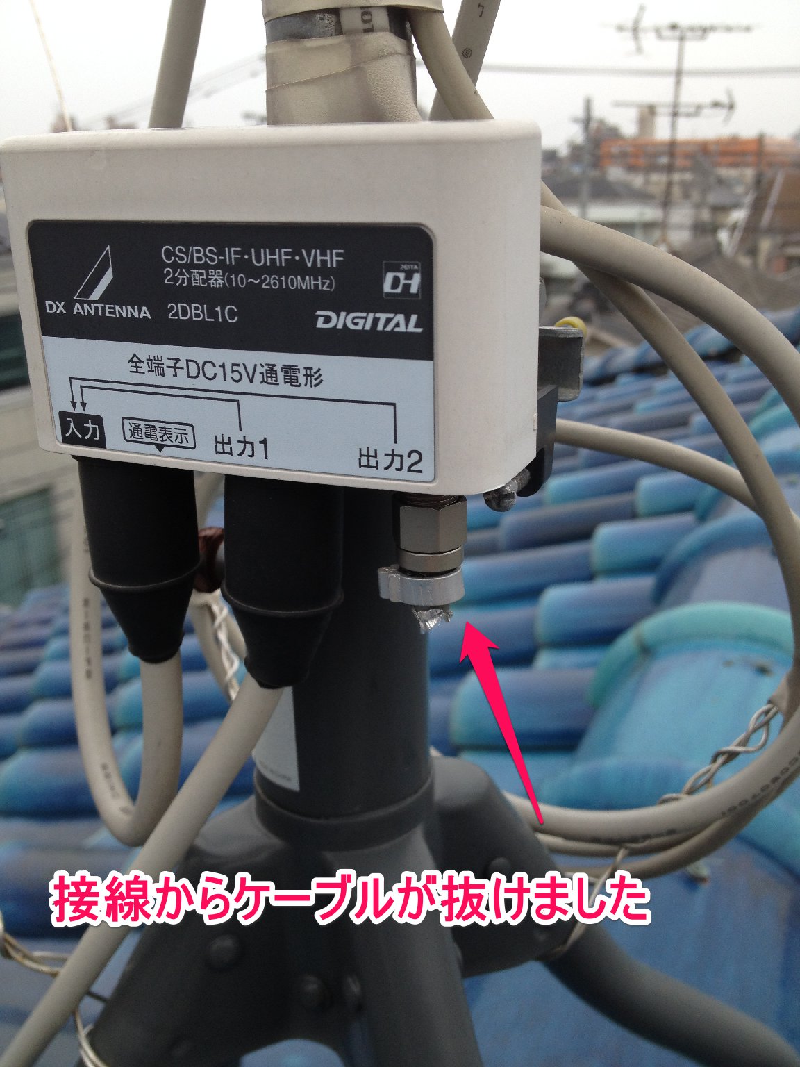 分配器より、アンテナ線が抜けてしまいました。