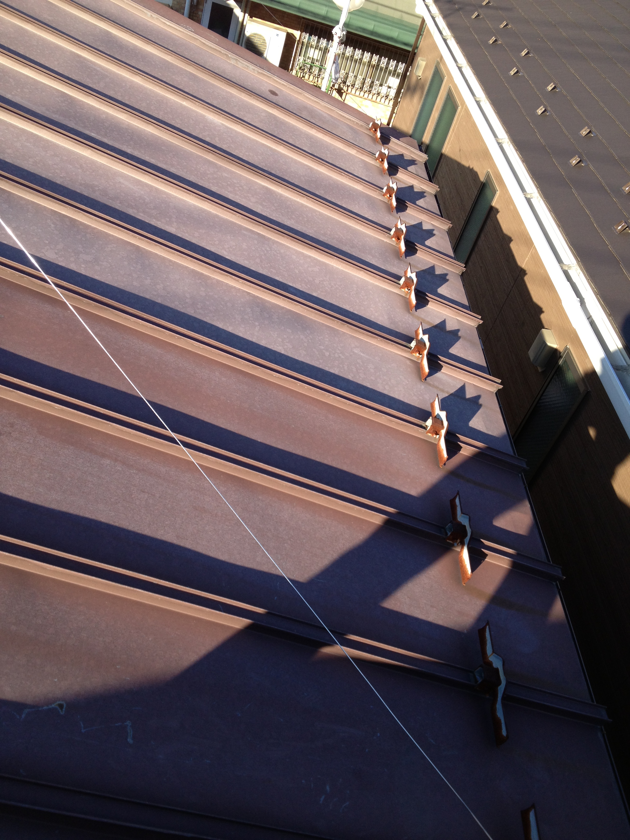立たないと作業ができません、屋根用の靴でガッチリとグリップを
