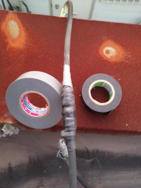しっかり、自己粘着テープで巻き、なおかつ ビニルテープで