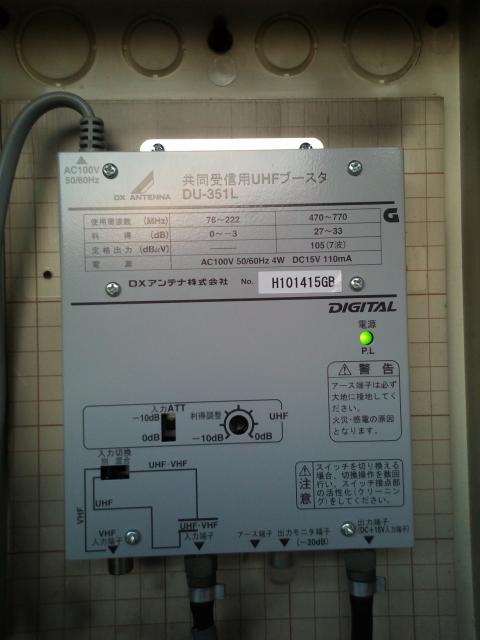 地デジ用の増幅器に交換し、測定、調整しました。