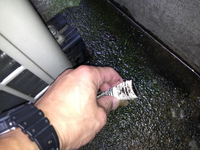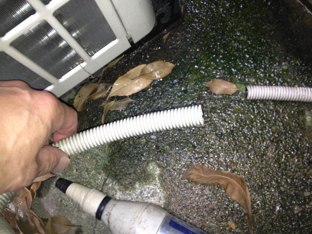 ドレンホースが踏まれて泥が入ってしまい排水不良になってました。