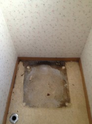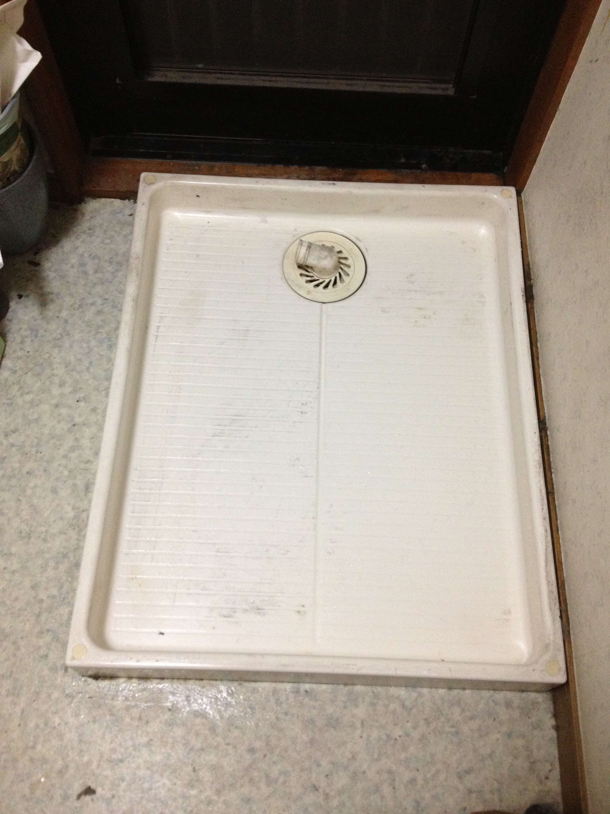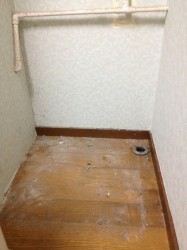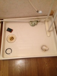 旧製品を撤去後、防水パンを洗いはじめました。