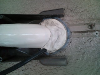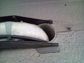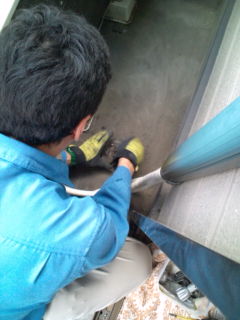 外側を配管工事し、エアコンの電気工事をして