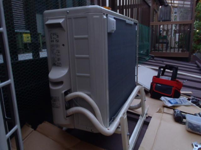お客様の希望で室外機の風の吹き出す、「前」を自分ち側に向けて設置工事しました。