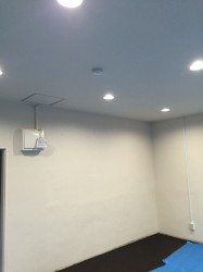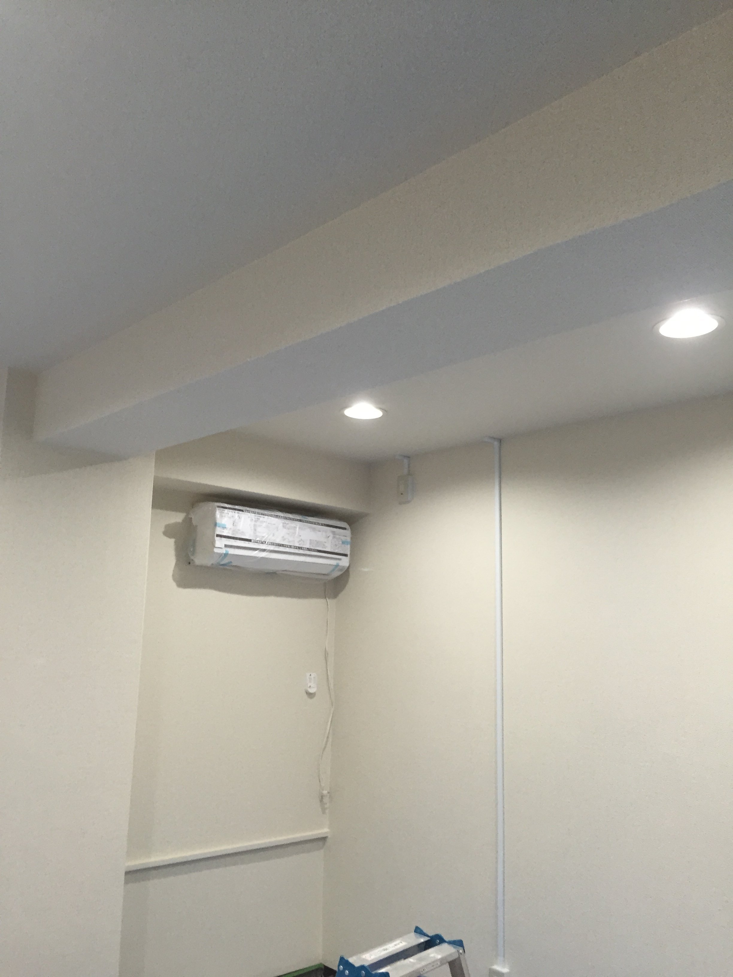 ダウンライトの取付、配管の仕上げ、エアコンの据付工事に取り掛かります。