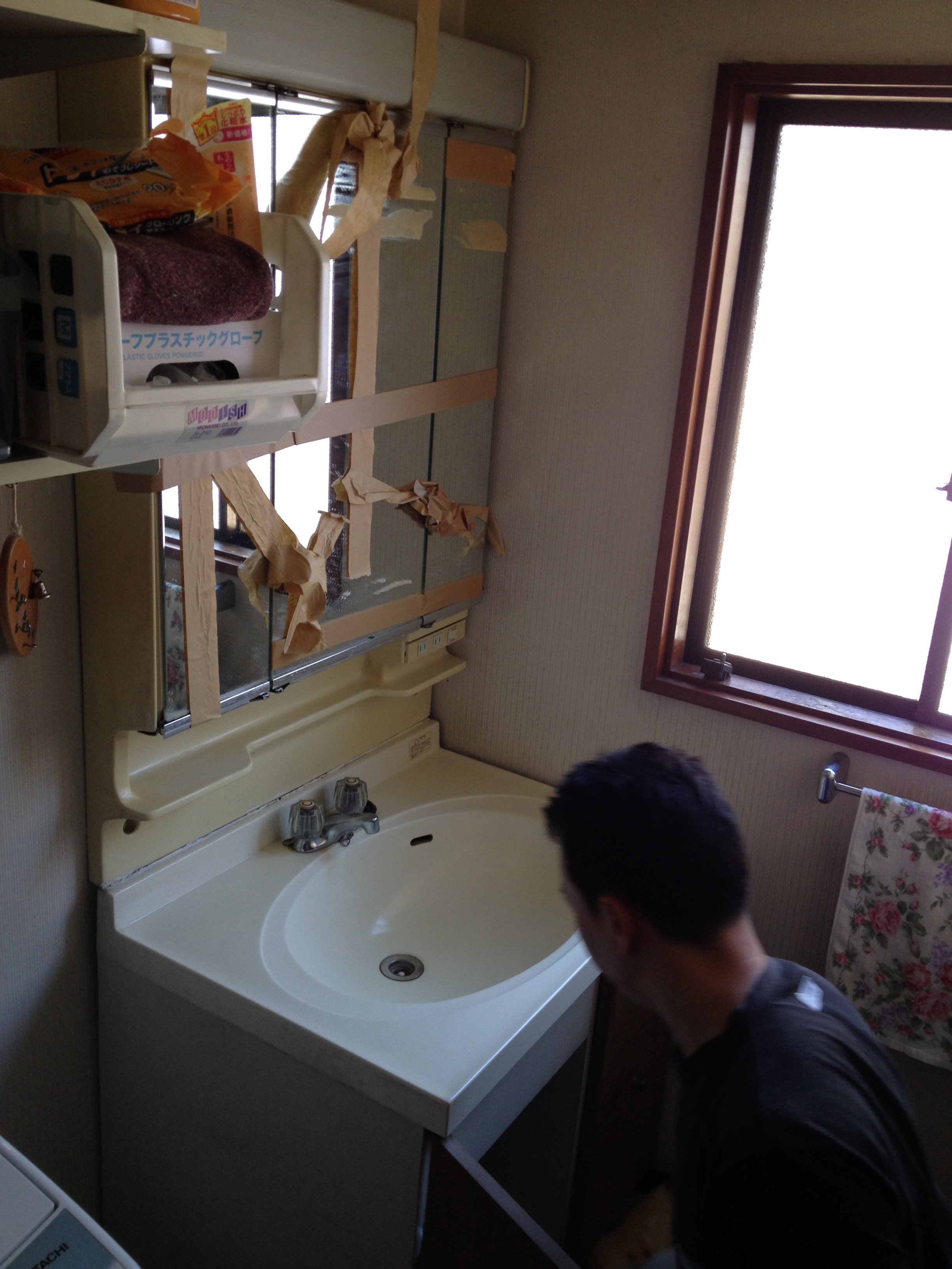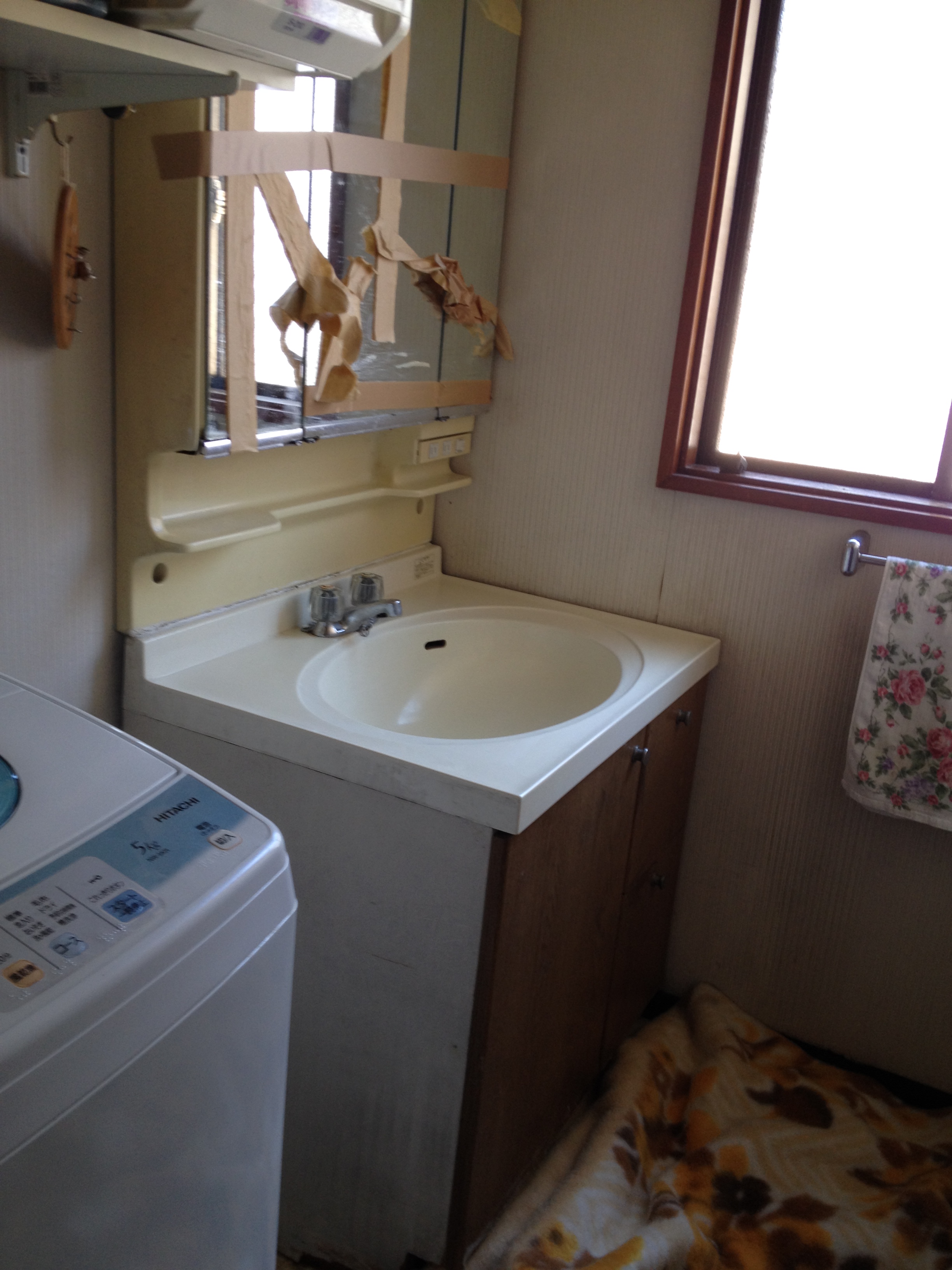 まずは水栓、排水を外し、そして化粧台を撤去しました。