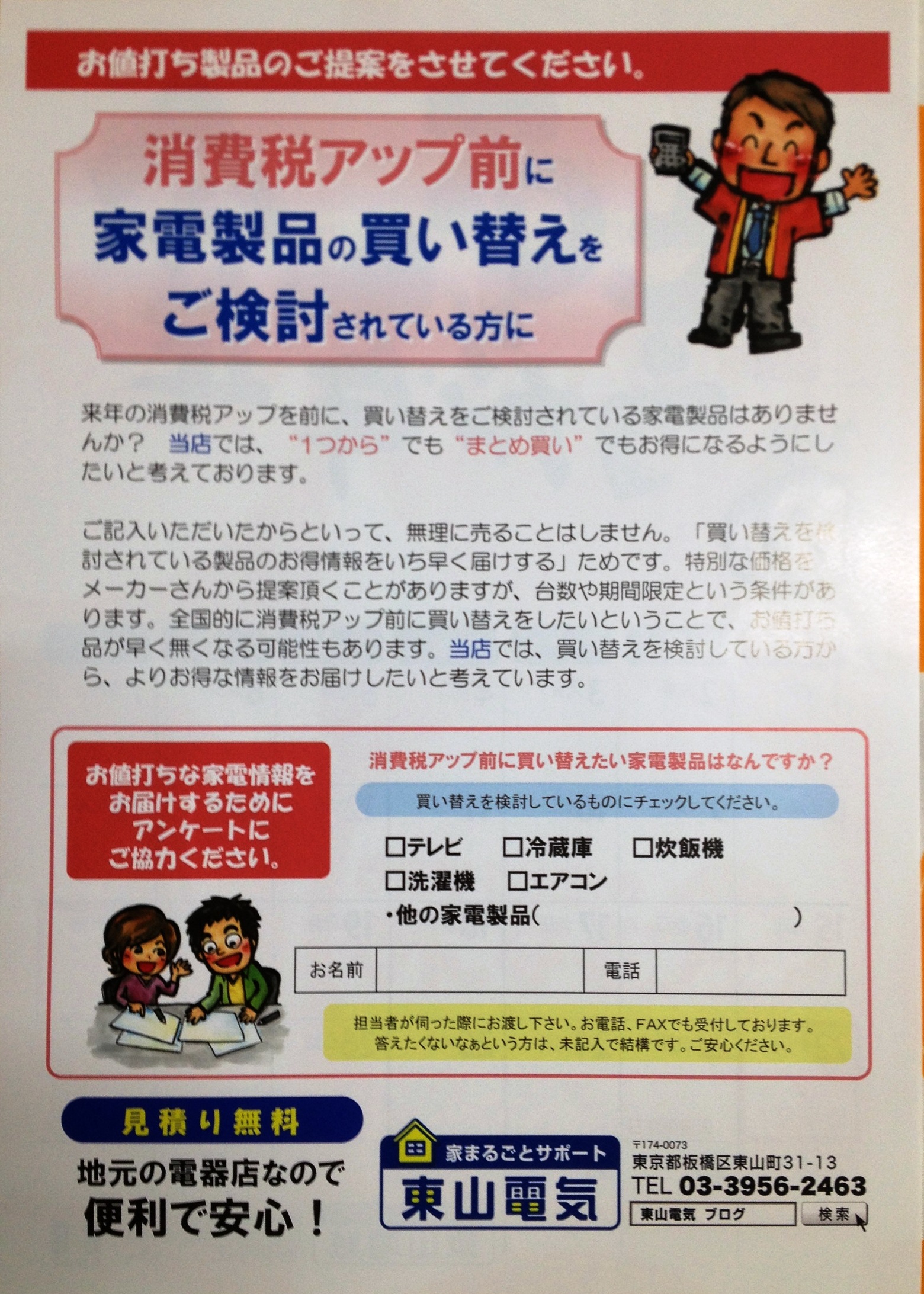 Copyright (C) 2007 オール電化、家電販売、エアコン、アンテナ-東京都板橋区(東山町)-(有)東山電気 Powered by オール電化JP