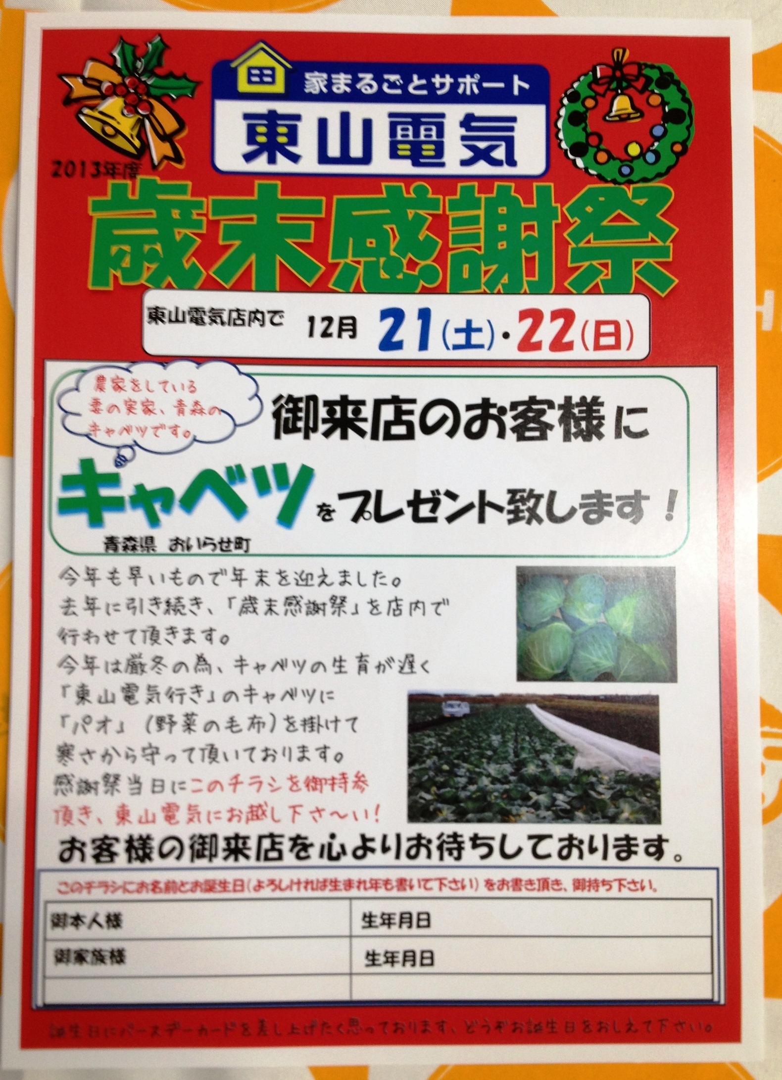 21日(土) 22日(日) に 「歳末感謝祭」 を店内で行います。