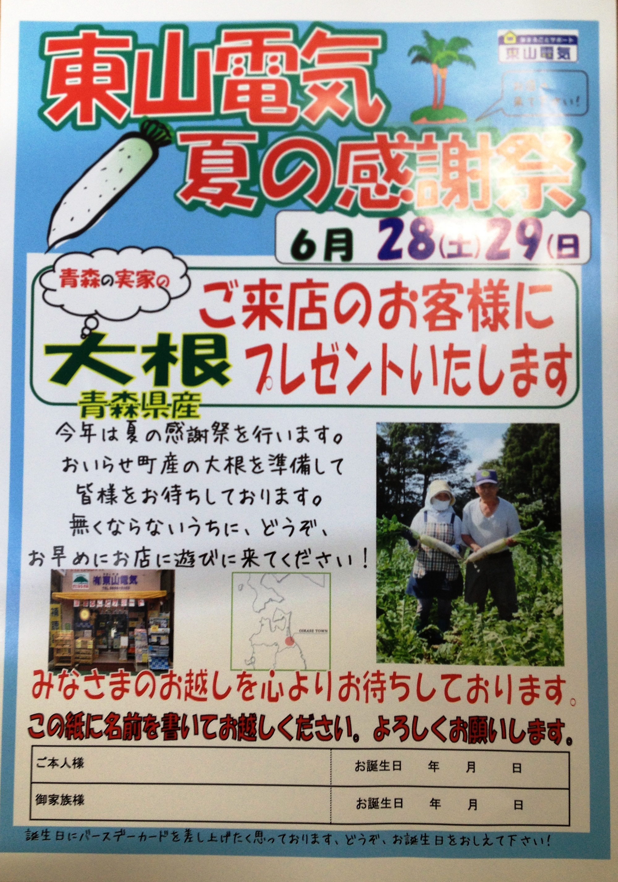 今年も、妻の実家、青森の大根をプレゼントいたします。