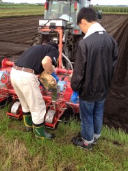 24年前にお手伝いした時は、まだこのようにトラクターで種蒔きする機械はなく