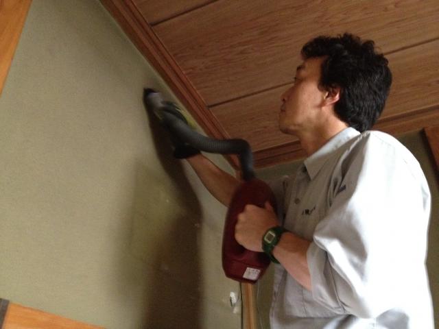 室内機を撤去したあと、掃除機でホコリを掃除します。