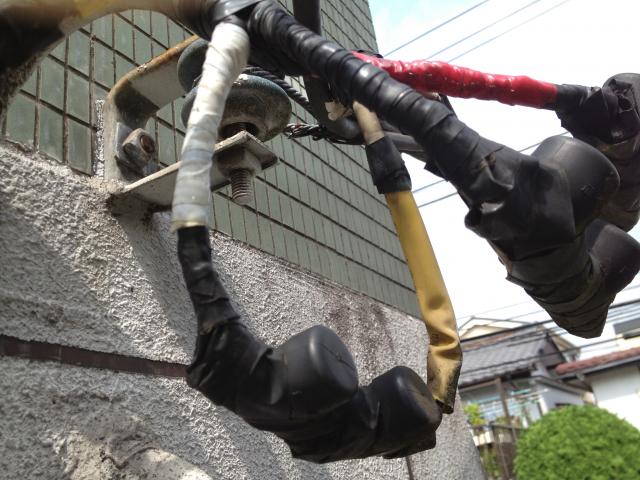 板橋区、小茂根のお客様、電気の外線ケーブルの被服が経年劣化で