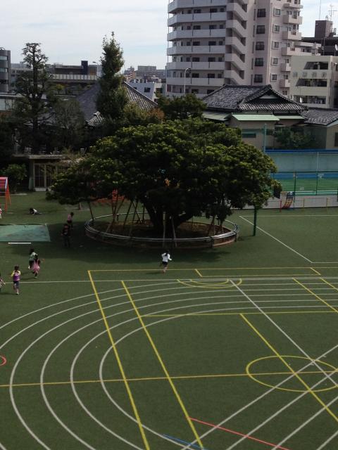校庭の真中にある大きい樹木は