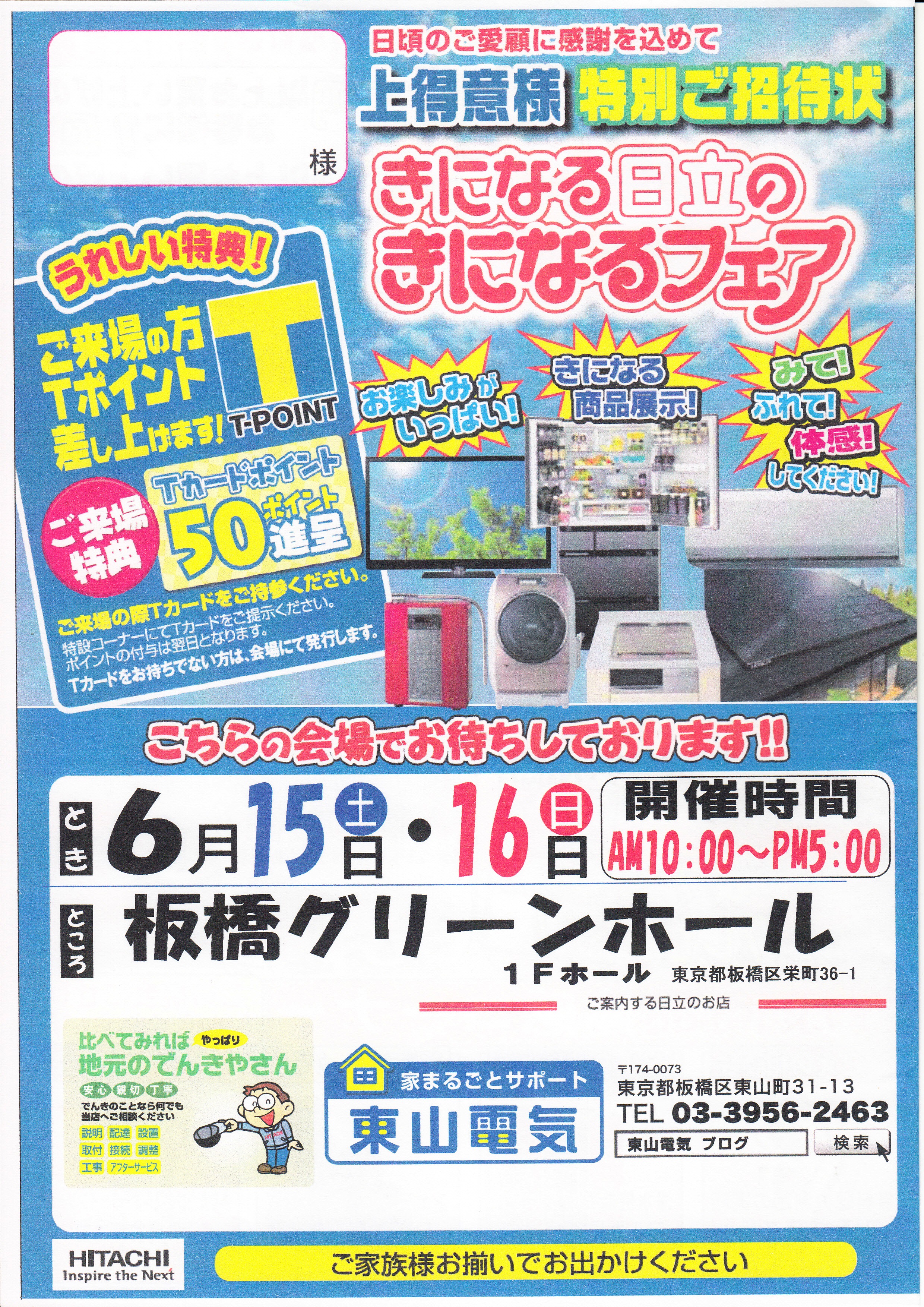 スタッフブログ 2013年6月14日板橋の電気屋、東山電気、オオハタです。