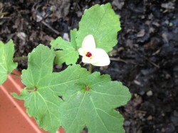 お客様のお嬢さんから頂いた、オクラの種、花が咲きました!