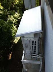 室外機は雪対策で屋根を取付、