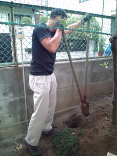 町会の納涼会の会場の仮設電気のポール建て。 同地区の電気屋さんからの依頼・・・