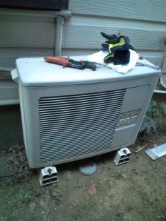 旧室外機の撤去中の写真です。
