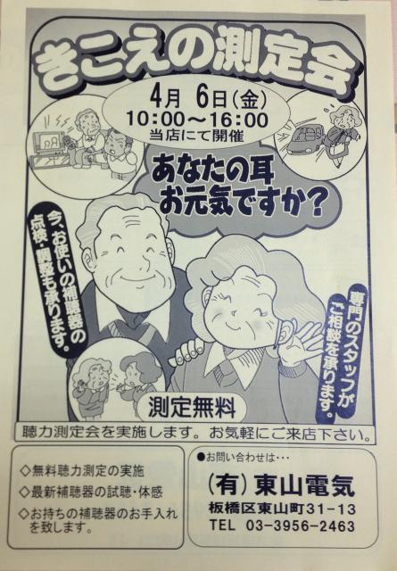 当店では、「きこえの測定会」 を行っております。