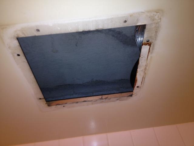 浴槽の真上に換気扇があります、風呂フタはあります。が、