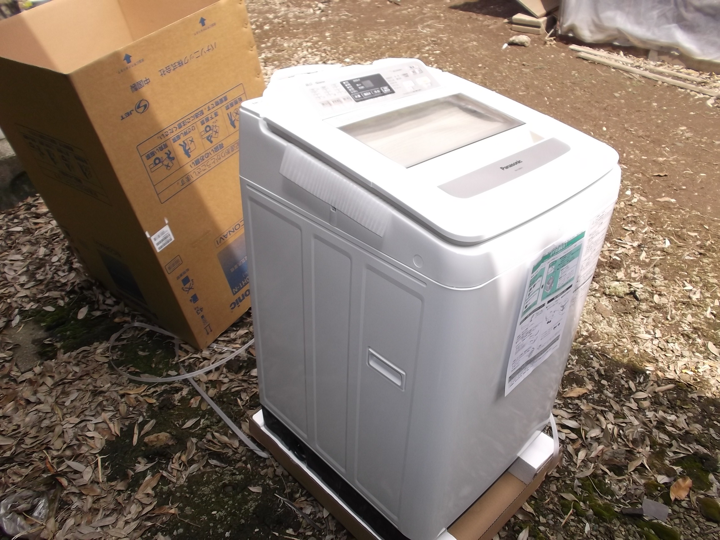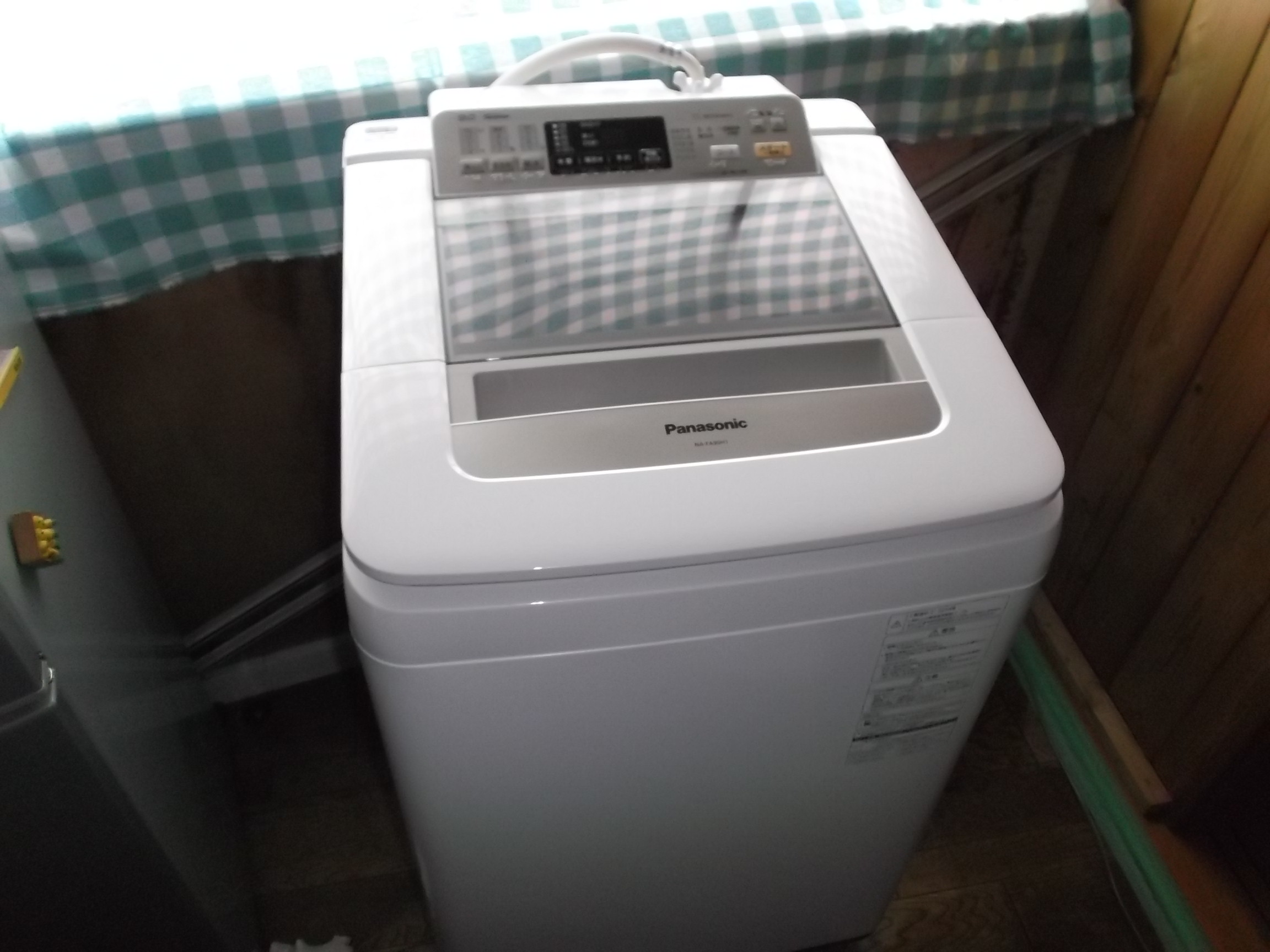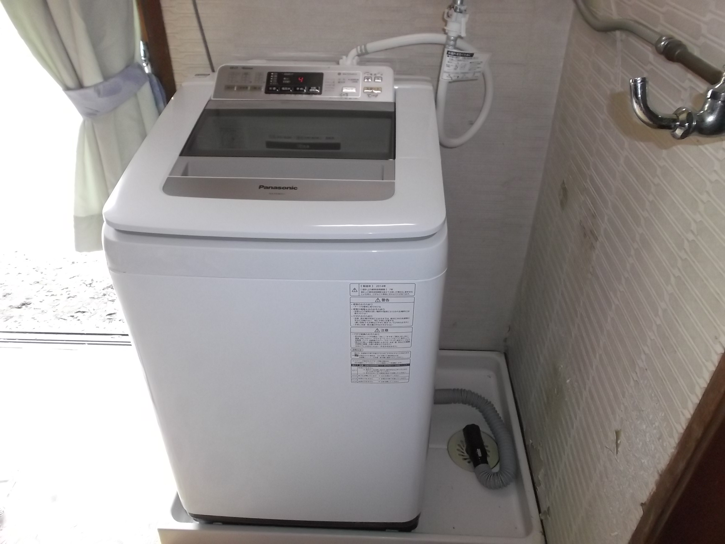 2014年5月30日 スタッフブログ, 施工事例Panasonicの新製品です。 一昨日納めさせていただいたお客様が、洗濯容量8キロの同型で、こちらが9キロの製品です。 こちらは2階に設置させていただきました。 既存品の撤去・貸出品の設置それとこの製品の納品時には、ご主人にお手伝いいただきまして、ありがとうございます!!! 私より動いて頂きまして、、、申し訳ナイ!!! 体格も自力も私よりはるか上行く方でした、、。 洗濯機は、これまた「素晴らしい製品」と、お褒めの言葉を頂きまして、、、益々売る気がUPしました。 『使いやすいですよ!!!』この洗濯機!!!
