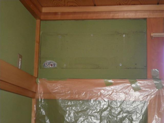 天吊りエアコンを撤去した後、下がり壁を500mm程造作します。