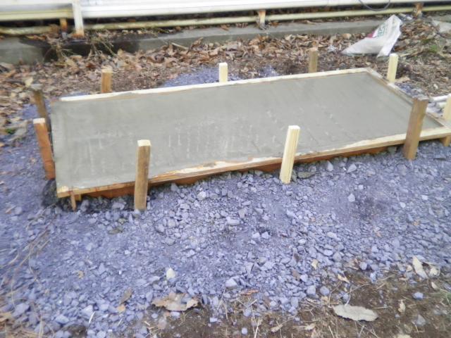 コンクリートを流し込みます。 鉄筋は事前に組んでおきました。