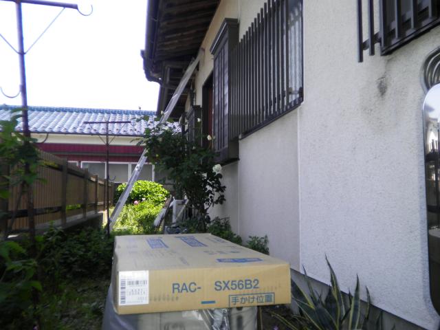 今日で引退して頂き、最新型の省エネエアコン日立SXシリーズに交換です。